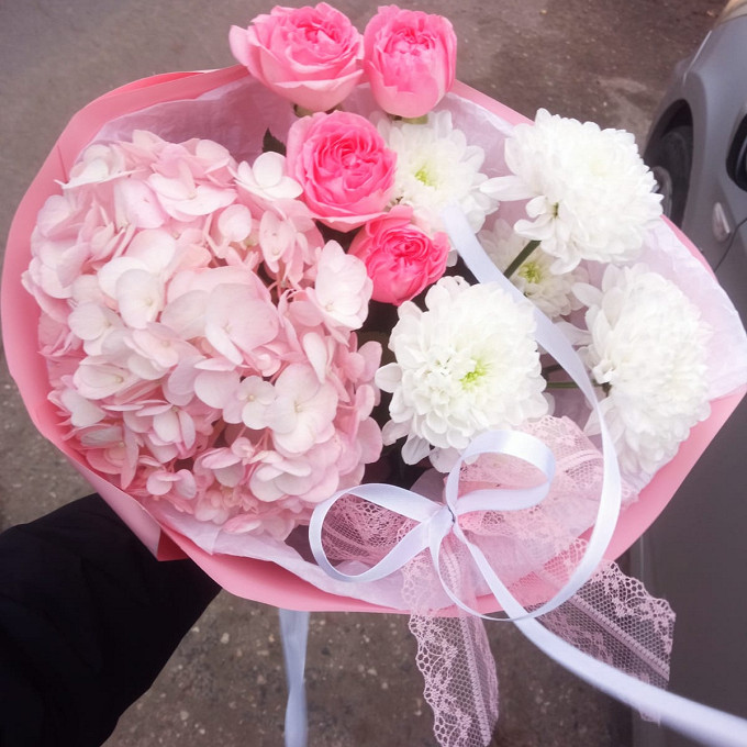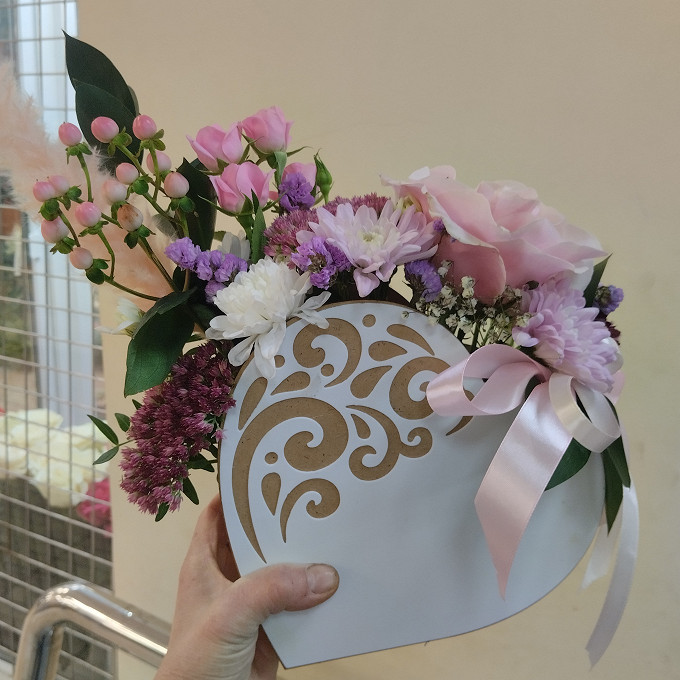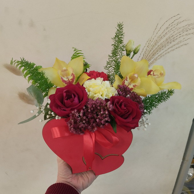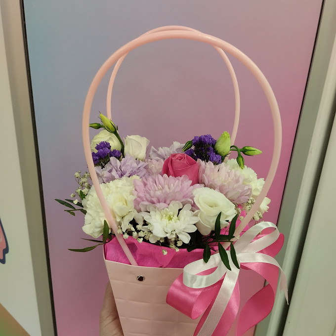 7 красных роз Кения, 40 см в розовой матовой плёнке